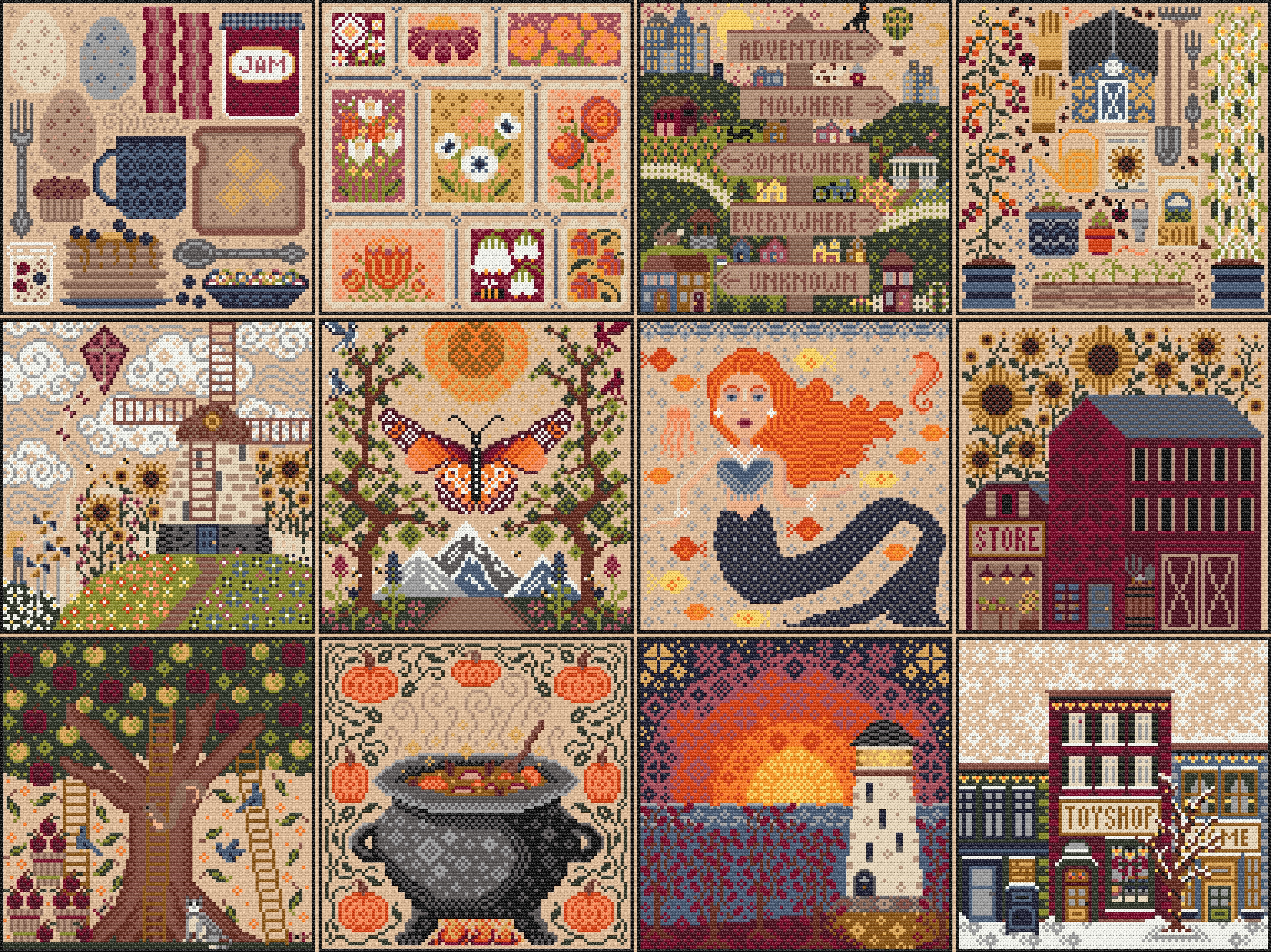 We have some New Year goals for you tucked inside of this Calendar. We also included 12 brand new cross stitch patterns to keep you stitching all year long. Designs are 95x95 each.